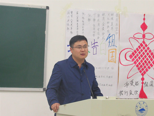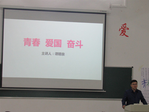青春是拿来奋斗的,谈到在东山村的扶贫经历时,谭翊泉老师自豪的表示,在全村干部的共同努力下,今年解决了村医和村小学教师的问题,每年可以为全村节约50万元,为东山村的脱贫攻坚打下了坚实的基础。谈到爱国,他希望同学们要多了解时事政治,民族自信心和自豪感的提升应当建立在综合国力提高的基础之上,在70周年国庆阅兵仪式上,威武雄壮的人民军队和现代化的武器装备为中华民族伟大复兴提供了坚强战略支撑,而基础建设和经济、科技等领域取得的一项项举世瞩目的成就,正在为“两个一百年”奋斗目标的实现添砖加瓦,正如习近平总书记庆祝中华人民共和国成立70周年大会上发表重要讲话指出“今天,社会主义中国巍然屹立在世界东方,没有任何力量能够撼动我们伟大祖国的地位,没有任何力量能够阻挡中国人民和中华民族的前进步伐。” “中国的昨天已经写在人类的史册上,中国的今天正在亿万人民手中创造,中国的明天必将更加美好。”谭老师引用总书记的一句话:“一代人有一代人的长征,这一代人要为下一代人跑出一个好成绩。”呼吁同学们要培养爱国情,为祖国、为民族而终身奋斗。谈到奋斗,他勉励同学们要学好知识,增强本领,不忘学医初心,牢记使命担当,将来做一名合格的医务工作者,为人民群众的健康卫生事业做出贡献。