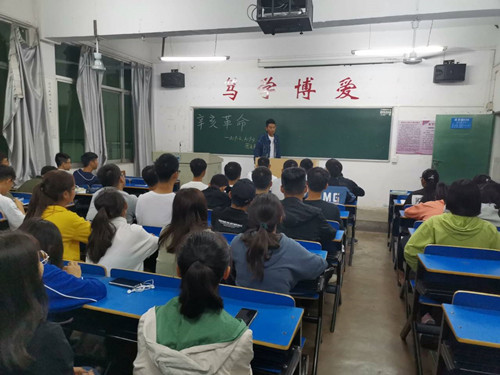 A1921、B1921班在10月16日晚上七点于思贤楼607开展了团日活动。待同学们有序就坐后,主持人宣布活动开始。首先同学们饱含敬意地朗诵了辛亥革命诗歌。诗词中一字一句无不表达了当时革命先辈的壮烈豪情,气贯长虹。然后大家观看了电影《辛亥革命》。电影情节扣人心弦,场下同学无不沉浸在这种氛围中,透过屏幕感受当时革命先辈的英勇无畏,随着影像中革命的成功,全体人员心中的激动溢于言表。影片结束后,几位同学上台表达了观影后的感受,表达了对国家如今飞速发展的自豪之情。