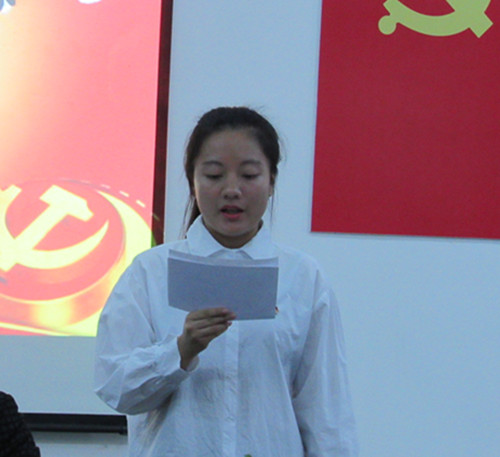 入党积极分子代表刘璐璐同学就自己的一些体会进行了发言,刘璐璐同学简单讲述了自己对于入党积极分子这一身份的理解,并认为入党积极分子应时刻以党员的标准来严格要求自己、努力前行、以身作则。