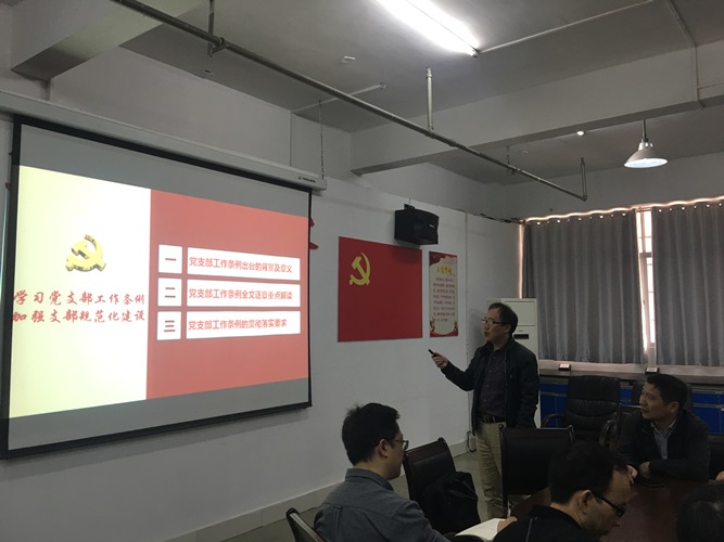 公司党委书记余朝阳同志做了《中国共产党支部工作条例(试行)》专题辅导。余朝阳同志分别从“党支部工作条例出台的背景及意义”、“党支部工作条例全文逐章重点解读”、“党支部工作条例的贯彻落实要求”等三个方面给全公司党员做了详细解读,并强调党员干部要做《条例》的忠诚践行者,真学习、真研究、真践行,决不能说一套做一套、搞花拳绣腿、做表面文章,要逐条逐字逐句研究,真正学深悟透、融汇贯通,把握主要内容和精神实质,牢记在心上,落实在行动上,正确指导党支部标准化、规范化建设,确保《条例》各项规定要求落到实处。