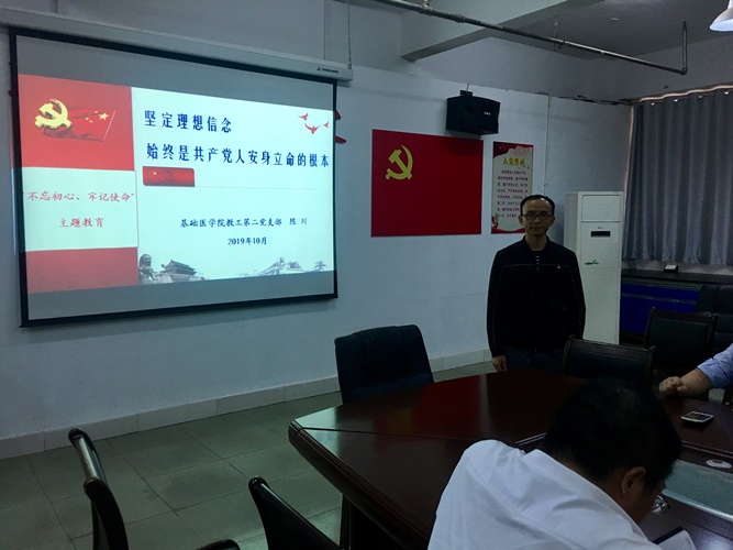 公司党委委员车向新同志结合自己亲身经历做了专题辅导,并和大家进行学习交流。车向新同志分别从“我是谁?从哪里来? 将到哪里去?”、“听教授博士报告,领会精神实质”等四个方面给全公司党员上了一堂精彩生动的党课。通过本次党课培训,进一步坚定全体党员的理想信念,在教书育人过程中要有主动担当意识,时刻铭记师德规范;在各自岗位上起到先锋模范作用,以为基层医疗机构培养合格、优秀卫生人才为己任;在为教研室建设、学科专业建设、学院建设与发展等方面多出谋划策,想方设法,力求创新。