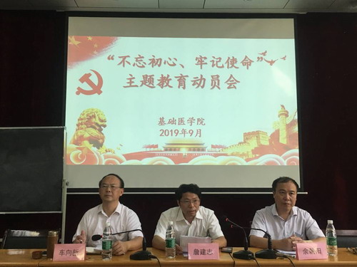 余朝阳书记代表公司党委作了动员讲话。他传达了学校“不忘初心、牢记使命”主题教育动员部署会精神,系统阐述了开展主题教育的重大意义、目标任务和有关要求,对学院开展这次主题教育进行了全面部署安排。余朝阳同志强调,各党支部及全体党员要聚焦主题主线,扎实推进学习教育,深入检视反思,对照党章查找党员意识、担当作为、服务群众、遵守纪律、作用发挥等方面的差距和不足,边学边查边改,深入推进各项工作,确保主题教育取得良好成效。