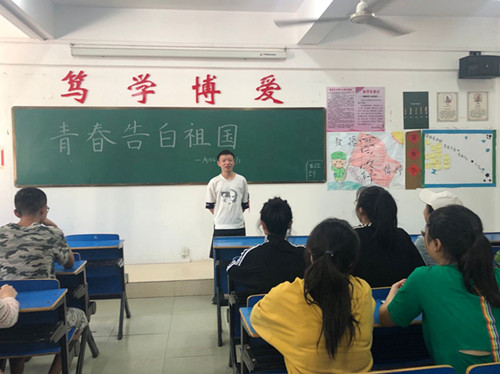 A1814班和A1815班于思贤楼固定教室开展本次团日活动,本次活动在两班团支书的组织下以演讲的方式开展。张馨元在演讲中表示:“在爬满甲骨文的钟鼎上,我读懂了童年祖国的灵气;在布满烽火的长城上,我读懂了青年祖国的英气;在缀满诗歌与科学的大地上,我读懂了壮年祖国的成熟。”祝烁斐慷慨激昂地说:“红旗飘飘,号角吹响,党和国家教育指引我们要崇德向善,锤炼本领,为实现中华民族伟大复兴的中国梦努力奋斗,相信有梦有爱的我们必定会放飞青春梦想,不忘初心、砥砺前行!”