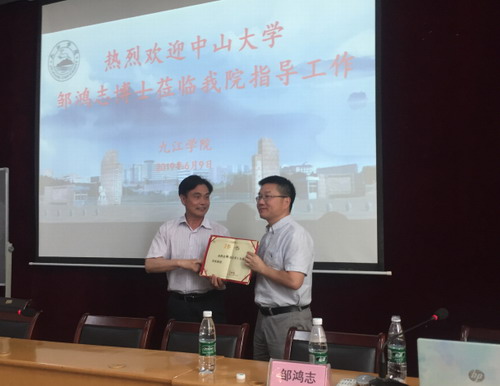 6月9日上午,公司党委书记赵伟在行政楼接见了九江籍在广州的优秀学者、国家“千人计划”特聘专家、中山大学邹鸿志教授。