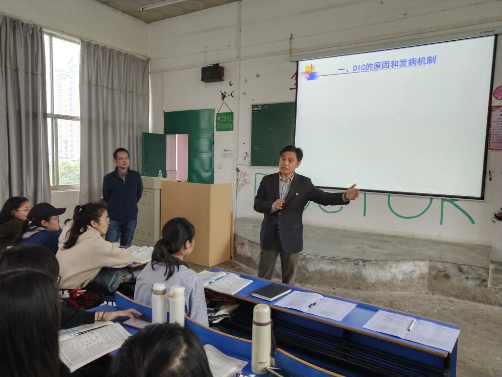 课后,杨耀防副董事长对王中平老师的讲课进行了点评,并与同学们进行了交流。他指出王老师讲课思路清晰,层次分明,节奏流畅,基础与临床衔接紧密,教学效果较好。杨副董事长告诉同学们王老师这堂课所讲的内容非常重要,DIC是基础到临床过度学科知识,在临床上如妊娠分娩、烧伤创伤、外科疾病等是一个常见的综合征,临床上会出现各受损脏器的功能障碍和广泛弥漫的出血,严重时危及生命。希望同学们学好这门课程,为今后学习临床知识打下坚实的基础。