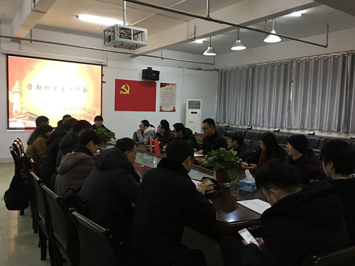 会上,余朝阳就新学期员工工作提出了要求。一是要求大家做好期初准备工作,及时掌握员工返校情况,做好重点员工谈心谈话工作,了解同学们假期思想动态;二是要求大家加强安全教育,督促检查寝室卫生、违章电器使用情况;三是要做好转专业员工安置工作,建立班级QQ群、家长微信群,做好班干选拔培养工作,尽快建立优良的学风班风;四是要求大家做好工作记录,员工科要及时提醒和检查。