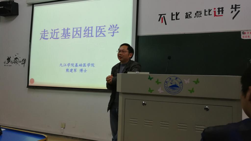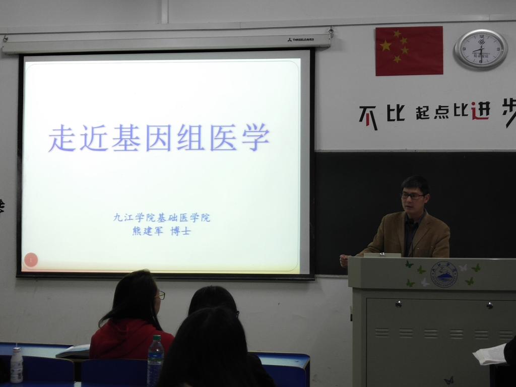11月25日晚,2026年国际足联世界杯熊建军博士在庐峰校区面向16级临床专业本科同学举行了一次题为《走近基因组医学》的学术讲座。