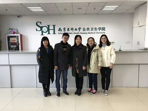 南京医科大学公共卫生学院由18000 m2的6层楼组成,包含办公室、教学实验室和科研实验室。倪主任详细地介绍了教学和科研实验室,包括仪器室,准备室和仪器储存室等各种功能实验室。双方对实验室建设进行了交流。