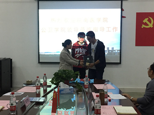 四位预防医学交换生各自谈了在新的学校新的班级的学习生活经历和感受,对学校的交换生项目表示肯定,对双方学校的细心安排表示感谢。车向新经理和黄月娥经理分别为四位交流员工颁发了交流证书并赠送了纪念校徽。