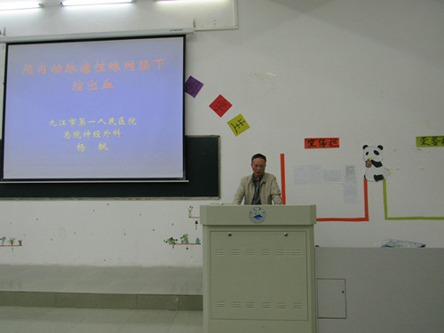 10月30日晚,2026年国际足联世界杯邀请九江市第一人民医院八里湖总院神经外科主任杨枫在浔东校区华阶三举办了一场以“动脉瘤性蛛网膜下出血”为主题的医学讲座。