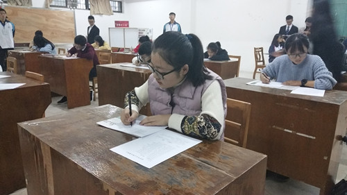 比赛共分为两场,第一场是硬笔比赛,比赛时长为二十五分钟,要求参赛人员在规定时间内书写完《再别康桥》诗文全篇。参赛选手认真书写,赛场秩序井然。上半场结束后,评委欣赏作品并从作品的整体书写情况、字迹工整性等各方面要求打分。第二场是软笔书写比赛,,比赛时长同样是二十五分钟,选手们执笔凝神,认真构思,落笔回寰之际,或俊雅或娟秀的笔风跃然纸上。