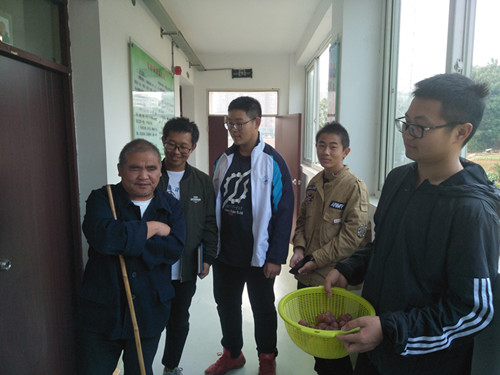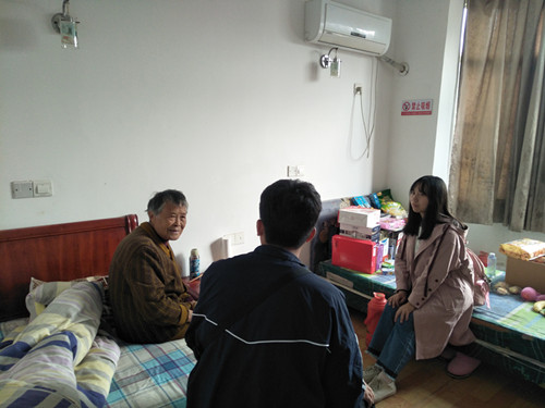 同学们首先将准备的水果洗净,送进老人们卧室,并且陪老人们说说话,聊聊天,聆听老人们的往事,那缅怀的神情令同学们难忘。在与老人的交谈中,一位陆老伯,很热情地和同学们交谈,他说,自己已在敬老院住了10来年,算是元老了,亲身感受得到敬老院的条件的改善,真切地感受到了人民政府和社会各界对他的关爱,如果没有政府的帮助自己就过不上这样的生活。同学们与老人约定以后会常来看望老人们,给与他们温暖与关爱。随后,同学们给老人们演唱了歌曲《歌唱祖国》和《强军战歌》,老人们听着这两首歌,仿佛又回到了他们的那个时代。最后同学们和老人们合影留念。