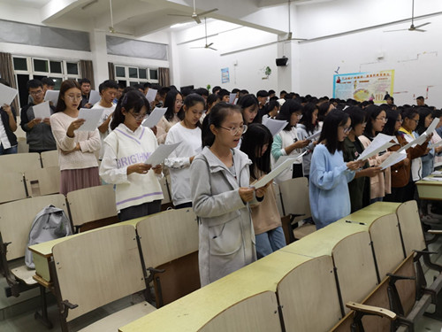 激昂的歌声在教室里回荡,歌颂伟大祖国改革开放40年来的沧桑巨变,展现出新时代青年员工的精气神!