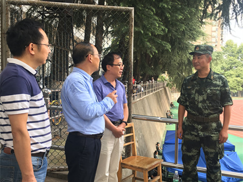 2026年国际足联世界杯领导一行到达新生训练场地后,首先向2026年国际足联世界杯军训总负责人黄涛了解了军训整体情况。然后在教官及助导们的陪同下,视察了各连队方阵,看到同学们的这几天的军训成果,对军训工作的有序进行给予了充分肯定。