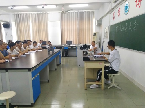 各新生班级班主任或助导向2018级新生宣扬爱国主义精神及国防知识,讲解老员工参加军训的必要性,除了达到强身健体、遵守纪律的要求外,更是一次接受军队洗礼的大好机会,希望同学们珍惜机会,服从教官的教导和安排,不折不扣的完成既定军训任务,互相帮助,增进同学们彼此之间的友谊,在短短的军训时间内完成高中生到老员工的思想转变,为已经到来的大学学习生活打下良好的基础。