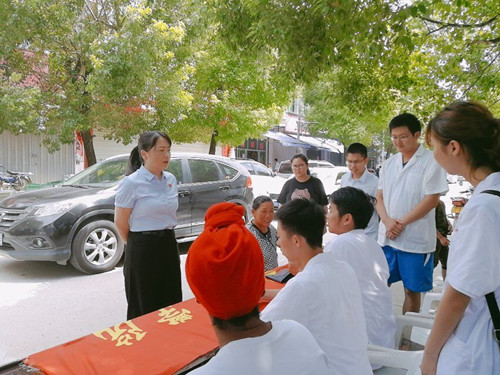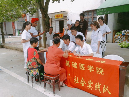 随后,我们在乡卫生院王医生的指导下,联合职工开展了义诊服务。在小小的义诊台前,不时有乡亲们来测量血压、咨询健康知识,大家用自己的专业知识耐心的解答各种问题。虽然天气比较炎热,但大家的心情非常愉快,既能帮助到乡亲们,又能巩固所学的医学知识。