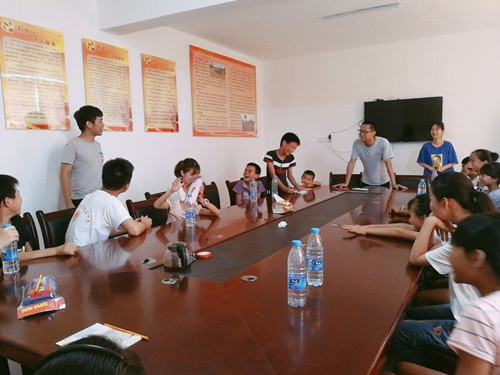 7月4日下午,太阳炙烤着大地,我们的志愿者们每家每户的去接小朋友们到村部来参加活动。小朋友们也是十分的兴奋,有些早早就来到了我们的活动地点。