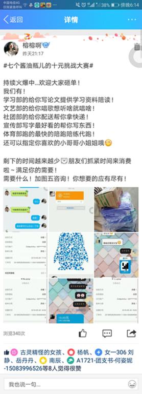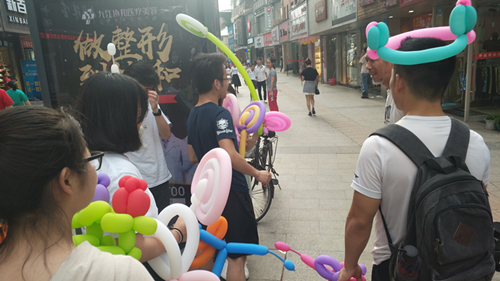 比赛需每支团队将随身携带的十元在活动期间通过创业项目努力赚更多的钱,以赚取的纯利润获得相应名次。各团队创业模式多样,前期线上线下积极宣传,效果显著,展现了老员工活跃的创新思维。“七个小矮人”团队策划两项创业计划:送早餐和卖气球。团队成员就近期雷雨天气,部分同学出门不便等原因,制定了送早餐计划,利用网络和下寝的方法招揽客户,收到学院各级员工的订单,待确认地址后则跑腿为客户购买指定早餐;卖气球计划在商业街开展,队员们将自己制作的气球于街上叫卖,期间吸引了很多小朋友去购买,收益颇多。“葫芦七兄弟”团队也关注校园代买活动模式,大力进行前期宣传,与商店老板进行沟通,对餐饮等代购赚取“跑腿”差价。有的团队充分发挥自主创业的潜力,运营线上点歌服务或是提前购买原材料自己制作成品,有凉皮、三明治、水果拼盘等小吃甜品,既减少了支出费用,又增强了队员们动手能力,更有趣的是成员们会在学校附近等人流量大的地方摆摊销售,营造了浓厚的创新创业氛围。