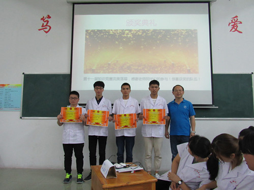 历经初赛和半决赛的比拼,共有A1714、A1721、A1741、A17714支队伍进入决赛。比赛分为非我莫属、争分夺秒、争夺九宫格、噼里啪啦、各抒己见和最终PK 6个环节。竞赛题目紧扣专业知识,让同学们对医学知识有了更深的掌握。比赛中,每个环节的角逐紧张不失活泼,在最精彩的各抒己见环节,参赛队伍通过播放的视频讲述他们对医学的看法和见解。选手们敏捷的思维和娴熟的知识运用在此环节中表现得淋漓尽致,赢得了全场师生观众的啧啧称赞和阵阵掌声。