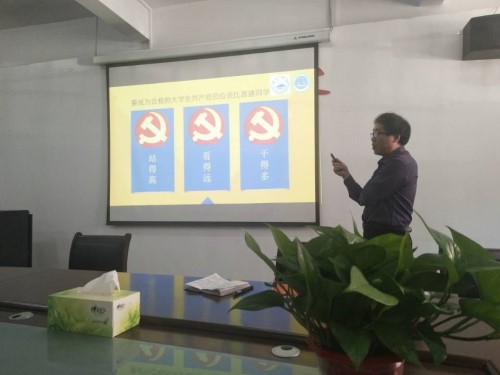 4月23日,第七、第八支部进行了以“入党程序”为主题的党课学习活动。指导老师徐霖分别就“入党的标准及条件”、“发展对象的确定、培养和考察”、“预备党员的接收”、“预备党员的管理、考察和转正”四个方面向同学们介绍基本的入党流程,期间徐霖老师还就入党动机向同学们提问,同学们积极发言说出了各自的想法。最后,徐霖老师向同学们讲解了作为一名追求先进的青年应该具有的正确入党动机,让同学们对入党流程有了一个基本的认识,受益匪浅。