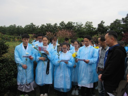 墓碑上刻着的“最后的奉献”是对他们最诚挚的敬意与赞美。正如缅怀词所说的“群芳化土,其香尤远”,他们就像这些花一样,依然不忘奉献自己,造福他人。