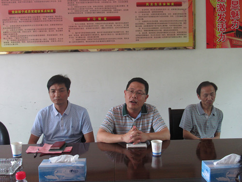 在交谈中,车经理首先对镇委、镇政府领导热情的接待和为“三下乡”活动提供的帮助和支持表示衷心的感谢,他说“暑期三下乡”的艰苦奋斗的精神值得我们老员工学习,而且作为医员工,也要多接触农村基层,这样有利于今后的适应和发展。同时他鼓励同学们要把专业知识运用到实践中去,要善于从社会中学,并能有所收获。接下来余书记发表讲话,他指出,在此次社会实践中,我们应当结合当地情况和需要调整活动方案,在工作和生活中要相互帮助相互团结,到社会最需要的地方去施展自己的才干,尽己所能把此次“三下乡”工作做好。