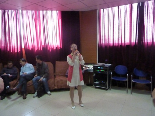 与此同时,在旁边的练歌房里歌声回荡,或低沉、或浑厚、或清亮、或高亢,参加卡拉OK比赛的老师们展现了与平时讲台上不一样的风采。