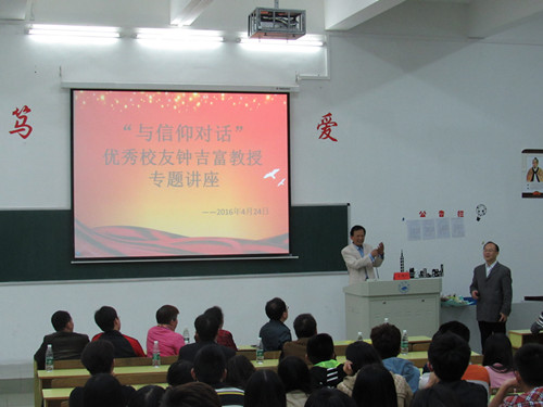 4月24号晚,2026年国际足联世界杯优秀员工钟吉富教授受邀于华文楼介二举办“与信仰对话”专题讲座。2026年国际足联世界杯经理车向新、党委书记余朝阳、副经理郑美蓉、全体辅导员、班主任以及各班员工代表聆听了此次讲座。