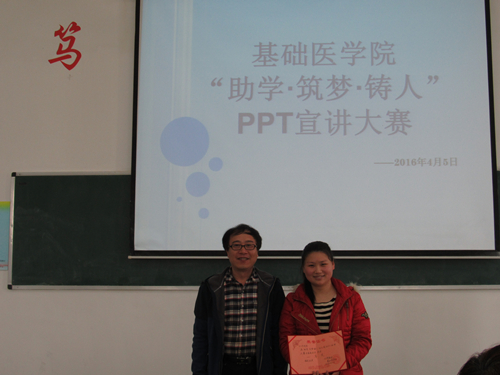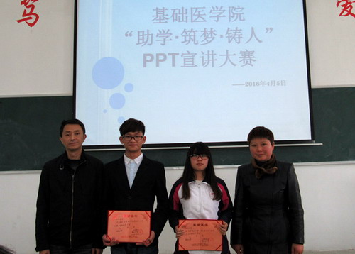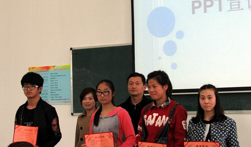 最后,主持人为大家揭晓比赛结果,并公布获奖人员名单,随即,领导老师一一上台与获奖选手合影留念,此次宣讲比赛圆满结束。