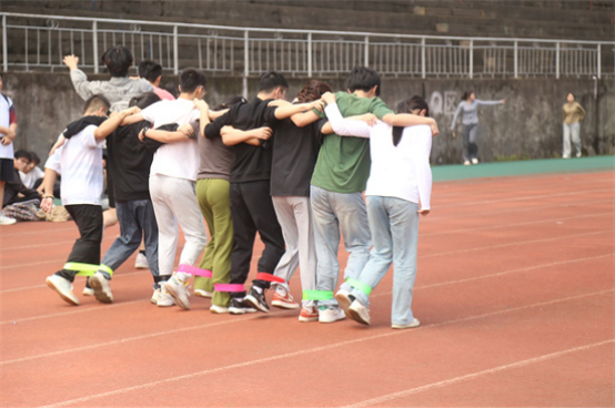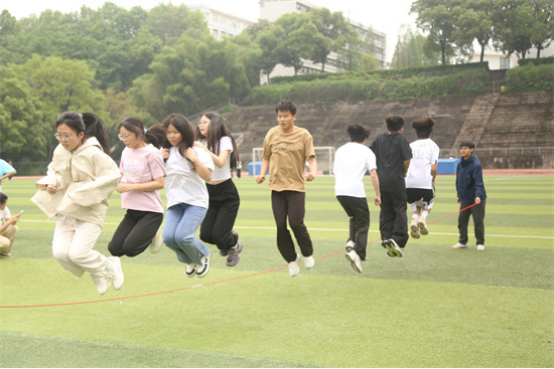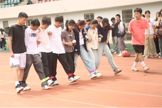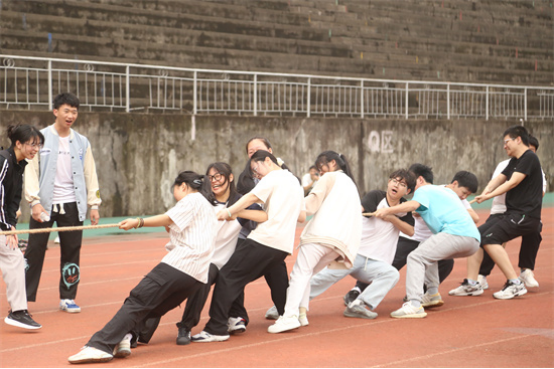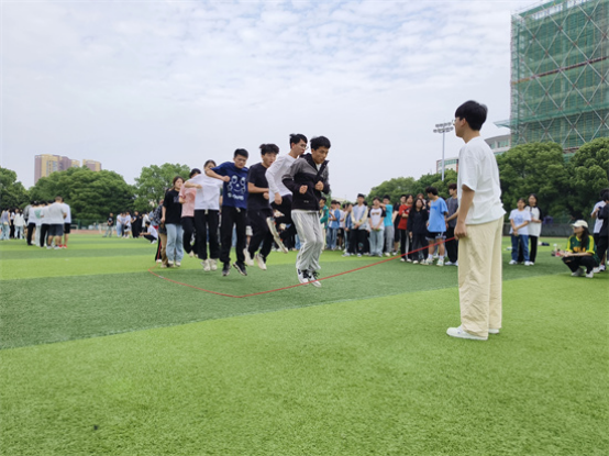 本次运动会赋予传统竞技项目趣味性,共设置了拔河、团体跳绳、多人多足等多个项目。赛前,裁判为同学们详细地讲解了比赛规则,确保了本次运动会的顺利开展。在拔河比赛中,各支队伍摩拳擦掌,蓄势待发,随着裁判一声令下,双方队员紧握绳子,奋力向后拉拽。团体跳绳进行时,参赛队员们紧密配合,齐心协力,跳绳伴随着整齐的口号,在空中划过一道道优美的弧线。现场观众也被他们的精彩表现所感染,加油声、呐喊声此起彼伏,气氛紧张而热烈。在多人多足游戏中,各支队伍都展现出极高的团队精神,他们互相鼓励、互相支持,共同向着终点前进。参赛运动员们不仅赛出了水平,也赛出了风采。