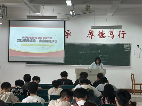 在义丰楼202,A2313班团支书通过向同学们讲述传承劳动精神的重要性,使勤劳的精神扎根在同学们的内心。他指出,勤劳是中华民族的传统美德,通过劳动实践可以培养个人的勤劳品质、塑造自身优良品格和自立自强的精神,更好地实现个人社会价值。