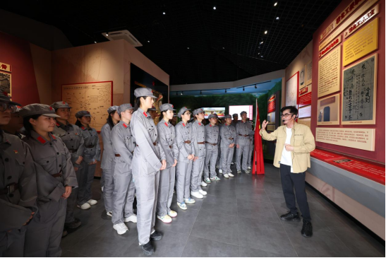 在岷山红色文化园展馆内,大家一起聆听讲解员讲述着岷山革命根据地发生的一段段革命感人事迹,“播下革命火种,迎来星火燎原,锻造血火铁军,历经抗日烽火,一脉薪火传承同学们深刻感受到了赣北工农红军顽强拼搏的革命精神和岷山革命先烈不怕牺牲的英雄气概。在关工委秘书樊云燕的带领下,同学身着红军服,再聚红军亭,重走红军长廊,通过跨时空的心灵感受,接受一次更震撼的精神洗礼。