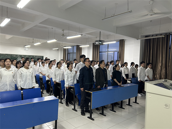 仪式伊始,全体人员起立奏唱国歌与红歌《没有共产党就没有新中国》,振奋人心的旋律在教室内回响。许晓源首先在会上进行了动员讲话,他激励大家要牢记入党积极分子身份深入学习贯彻习近平新时代中国特色社会主义思想,认真学习本次培训教育内容,严格执行学习纪律,勤于思考扎实收获学以致用