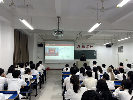 开班仪式结束后,许晓源与刘频健分别为学员们进行了专题党课辅导。许晓源《奋进新时代,建功新九医——学习贯彻党的二十大精神》为主题,从十八大以来在习近平总书记领导下,中国所取得的伟大变革和历史成就、开辟马克思主义中国化时代化新境界、新时代新征程中国共产党的使命任务、新时代新征程的重要部署和战略举措等四个方面展详细解读了党的二十大精神并号召同学们做有理想、敢担当、能吃苦、肯奋斗的新时代青年,在国家需要的时候能够挺身而出,贡献自己的青春力量,建功新九医。刘频健则围绕《弘扬五四精神,做新时代有为青年》这一主题展详细讲述五四精神的起源五四精神的具体内涵及其新时代化的观点,他激励全体同学们,不仅要积极践行中国特色社会主义核心价值观,更要深刻领悟并将个人的命运紧密交织于国家民族的伟大复兴之中,在不懈奋斗与砥砺前行的过程中挥洒青春热血,以昂扬的姿态去谱写出属于每个人生阶段的辉煌篇章。