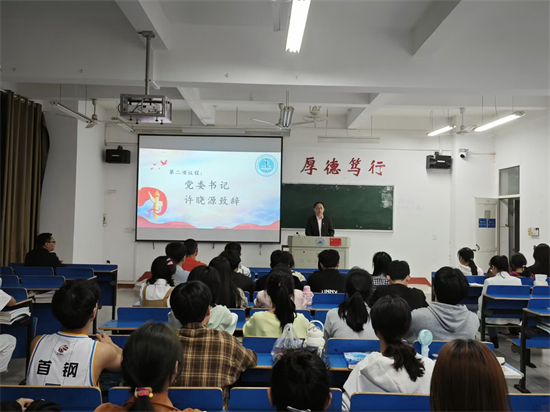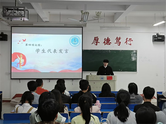 仪式伊始,全体成员起立奏唱国歌。随后,许晓源致辞,他首先向荣获入团积极分子荣誉的同学表示祝贺,并指出共青团作为党的后备军,要时刻牢记组织纪律性,希望每一位团员都能够以身作则,严格遵守团组织的规章制度,也期待同学们能够携手并进,共同营造出一个更加团结、和谐、充满活力的团组织。