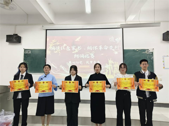 比赛结束后,评委们秉着公平公正的原则,评选出了获奖作品。其中,《峥嵘岁月酬壮志,字里行间家国情》《家书寄深情,赤诚照党心》荣获一等奖,《红色家书载忠魂,纸短情长激担当》《红色家书显英魂,纸短情长融担当》《颂红色家书,忆先烈情怀》《给女儿的遗书》荣获二等奖,《红色家书传薪火,清明追思忆先烈》《诵读红色家书,传承百年信仰》《浔续红色血脉,诵读时代新风》《赵一曼留给儿子的遗书》《颂红色家书,歌红色情怀》《可爱的中国》荣获三等奖。