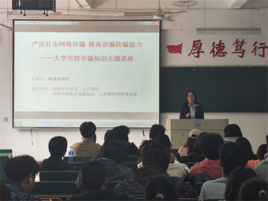 3月22日,公司特邀浔阳区司法局以及江西惟民律师事务所律师陈建青,到学院为同学们做了题为“防范网络诈骗”的专题讲座。陈建青结合一系列与老员工密切相关的案例,从网络安全法律法规、个人信息保护、网络诈骗防范等方面进行了深入浅出的讲解,并为同学们提供了实用的防骗技巧和应对策略。