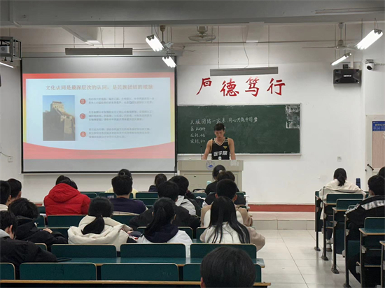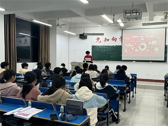 在义丰楼211,A2343班团支书带领同学们了解少数民族的风俗、不同地域文化的风情;领略不同生活方式的交流与碰撞。并举行了简单的知识竞赛,让同学们更加深刻地了解各民族文化差异,不断铸牢中华民族共同体意识。