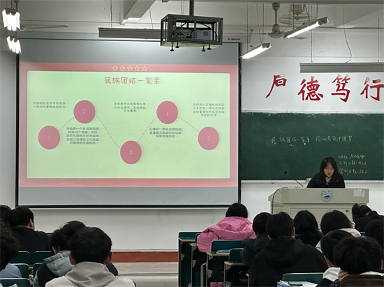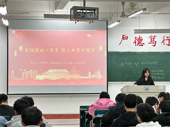 A2313班团支书在义丰楼402开展团日活动,团支书从“马克思主义五观”入手,深入阐述我国的民族政策,强调“三个离不开”和“六个好”思想。通过楷模故事,深入浅出地讲述民族团结的重大意义。