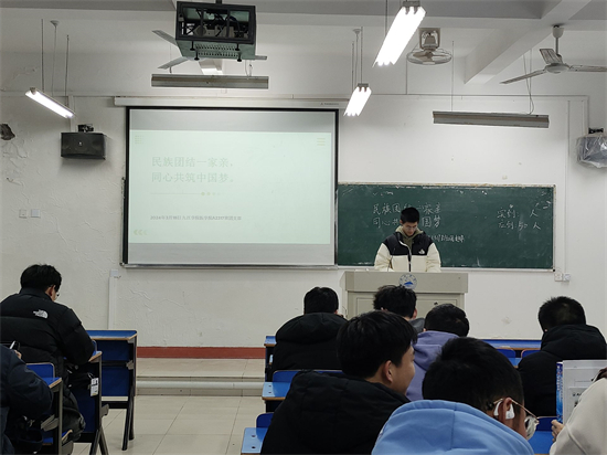 在香远楼303,A2314班团支书通过民族大团结的视频引出本次团日活动的主题,并为同学们讲述党在民族工作中提出的一系列新理念、新思想、新观点,采取的一系列新举措。激励每位同学为实现中华民族伟大复兴的中国梦贡献智慧与力量。
