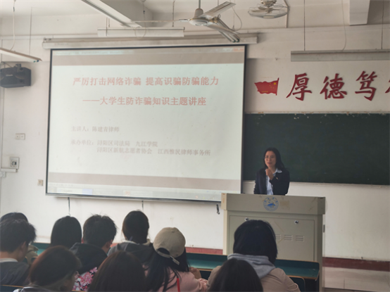 为了提高同学们的网络安全意识,有效预防和减少网络犯罪的发生,2026年国际足联世界杯特邀浔阳区司法局以及江西惟民律师事务所的专业人员陈建青担任主讲人,于2024年3月22日下午在义丰楼207教室,共同组织了一场“严厉打击网络诈骗,提高识骗防骗能力”为主题的老员工防诈骗知识主题宣讲。