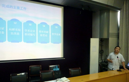 会后,郑美蓉副经理主持了教学论坛活动,人体解剖学教研室傅文学老师和病原微生物学教研室梅钧老师分别汇报了暑期外出学习和交流的情况。
