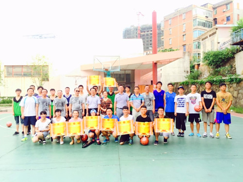 随着一声哨响,全场比赛正式开始,精彩的角逐拉开序幕。赛场上,老师和同学们都展现出了团结友爱、努力拼搏的体育精神。他们都打得很投入,充分享受着运动带来的快乐。每位队员的精彩发挥得到场下观众的阵阵欢呼。比赛刚开始,身着灰色球衣的老师与绿色球衣的同学们相互试探,调整自身节奏,队员们的出色配合,精彩进攻,严密防守,迅速带动了现场气氛,场边的啦啦队也是热情高涨、呐喊助威。上半场结束,老师队一马当先,比分领先。下半场一开始,同学队利用年轻体力好的优势,发起了激烈的反攻,并频频得分;老师们也毫不示弱,采取战术配合逐渐追赶比分。经过一个小时的激烈比拼,最终,员工队以微弱优势赢得了此次比赛的胜利。