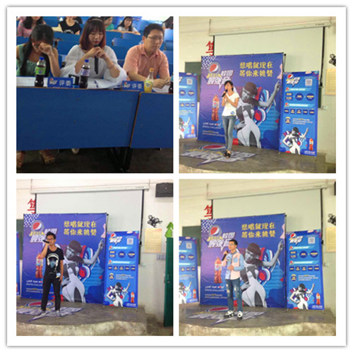 高歌音乐梦想,放飞青春希望。为充分展示广大学子的音乐才华,完美彰显青年老员工团结向上、奋发进取的精神风貌。5月23日下午14:00,由百事可乐公司主办、医友保健协会承办的“百事挑赞校园最强音”活动在思贤楼文阶五举行。此次活动由百事可乐公司全程赞助。出席大赛的有九江职业大学的欧阳老师、艺术学院的谢老师、百事可乐人事部经理等,现场则有30多名参赛选手及100余名观赛者。