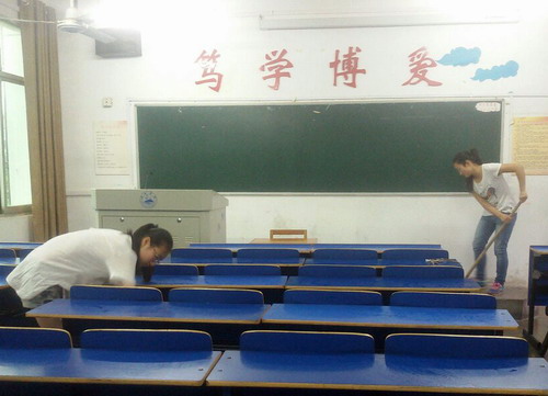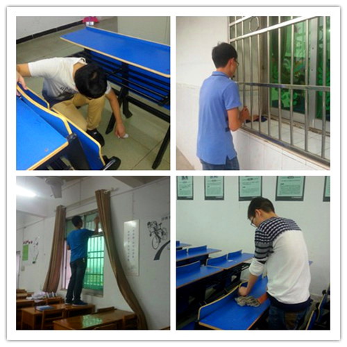 活动中,大家不怕脏,不怕累,积极清理垃圾,铲除桌面、椅子、地上的胶布、纸张、玻璃上堆积的灰尘。干劲十足,相互配合,认真地完成了此次清理“牛皮癣”活动。