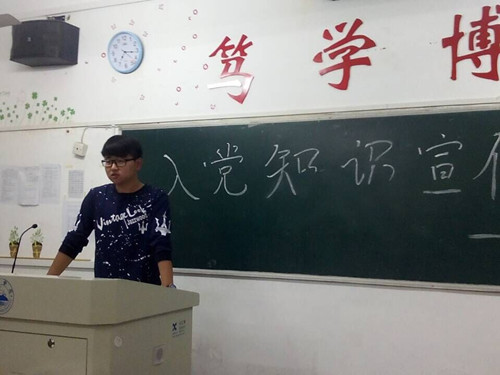 班会由各班班长主持,同学们一同观看入党知识PPT。此次主题班会主要强调“党员的义务和权利、申请入党的条件和要求、发展党员的程序和手续、端正入党动机,以实际行动争取早日入党”等四个方面内容,重点向同学们强调了要端正入党动机,树立正确的世界观、人生观、和价值观等方面内容。同学们认真听讲,并展开了热烈的讨论。