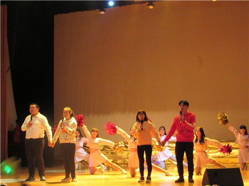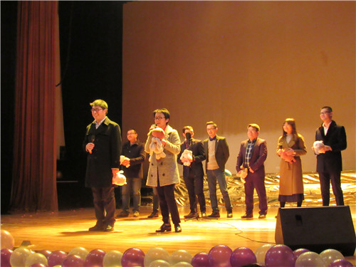本次晚会还开设了观众互动环节,主持人随机挑选台下观众上台进行夹气球游戏,对获胜的同学现场赠送礼品,现场互动气氛高涨,欢呼声不绝。值得一提的是,别出心裁的微信墙互动环节拉近了舞台与观众的距离,同学们通过微信表达心声、传递祝福、分享欢乐,三次微信抽奖,幸运之星将在晚会结束后获得一份精美礼品。更有小黄人和轻松熊在台下为观众发糖,为即将到来的新年增添意外之喜。