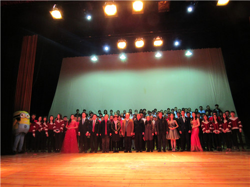 晚会结束后,领导、嘉宾上台与演职人员合影留念。