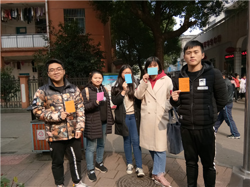 志愿者们在食堂门口分发由大二学长学姐以手写的方式书写的祝福卡纸,同学们可以自行去领取祝福卡纸。那一张张的卡纸上的声声祝福都代表了学长学姐们对同学们的鼓励,它们温暖了这个寒冷的冬日。在同学们的热情参与下,此次活动圆满结束。