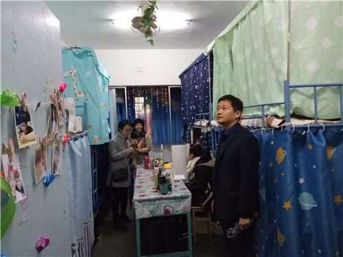 11月30日下午,基础医院学党委书记余朝阳带领团委、员工科负责人,班主任下寝了解同学们寝室文化节的布置情况。